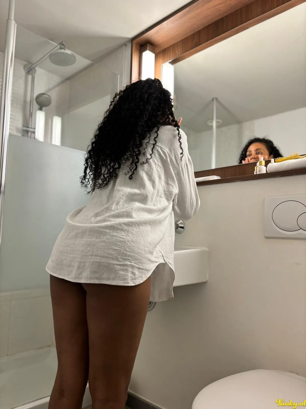 Braziliaanse vrouw met een warme huid, mooie rondingen en een natuurlijke sensualiteit.